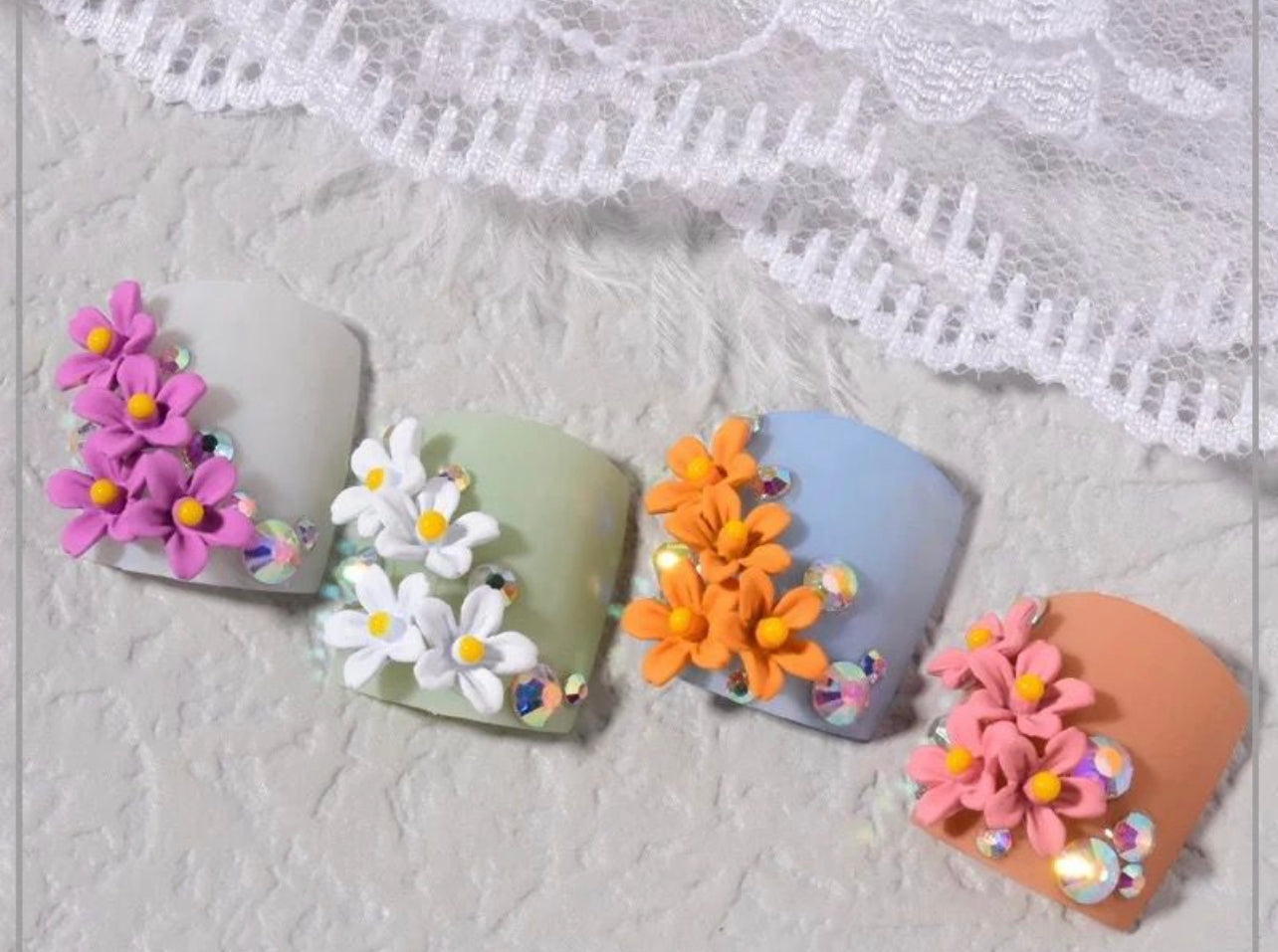 Mixed colors nail art flowers